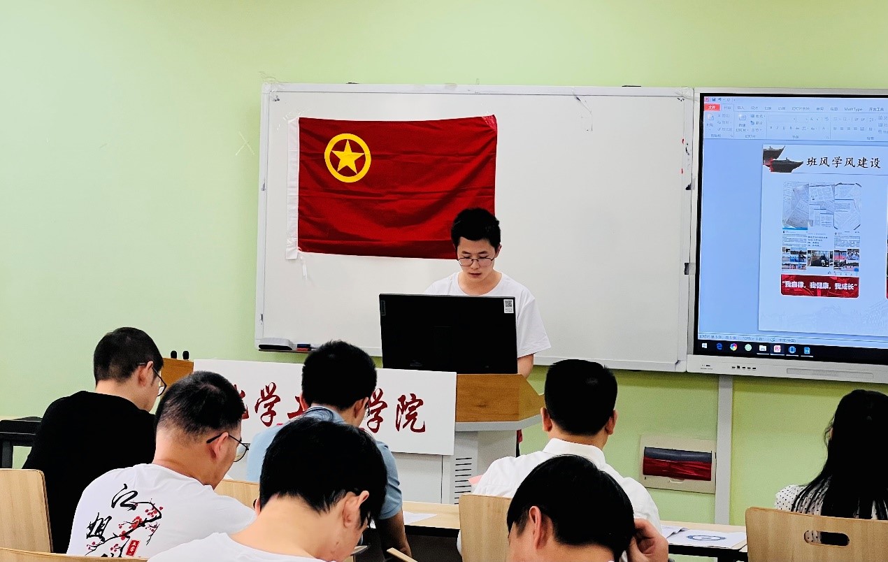 活动第三个环节,学习委员梅哲威同学首先从学业成绩、科研情况和竞赛三个方面出发,对班级学业情况进行了深入细致的分析。然后,汇报了班级依托学院专家、导师、班主任、关工委老教师和学工组老师等多种资源,积极开展的多项学风建设活动和成效。最后,展示了班级集体和个人取得的丰硕成果。
