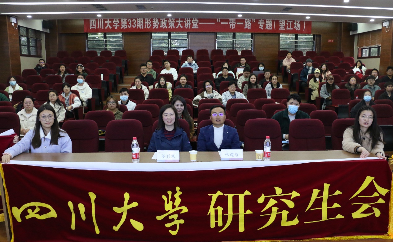 11月30日,第33期“一带一路”专题“形势政策大讲堂”系列讲座在望江校区新葡亰8883ent楼313报告厅顺利开展。讲座由学校研究生工作部主办,学校研究生团委研究生会、新葡亰8883ent和国际关系学院研究生团总支研究生分会联合承办;旨在深入学习习近平总书记的重要讲话精神和“一带一路”重大倡议,领悟“一带一路”的实践成就和世界意义,明确新时代中国青年应承担的责任。