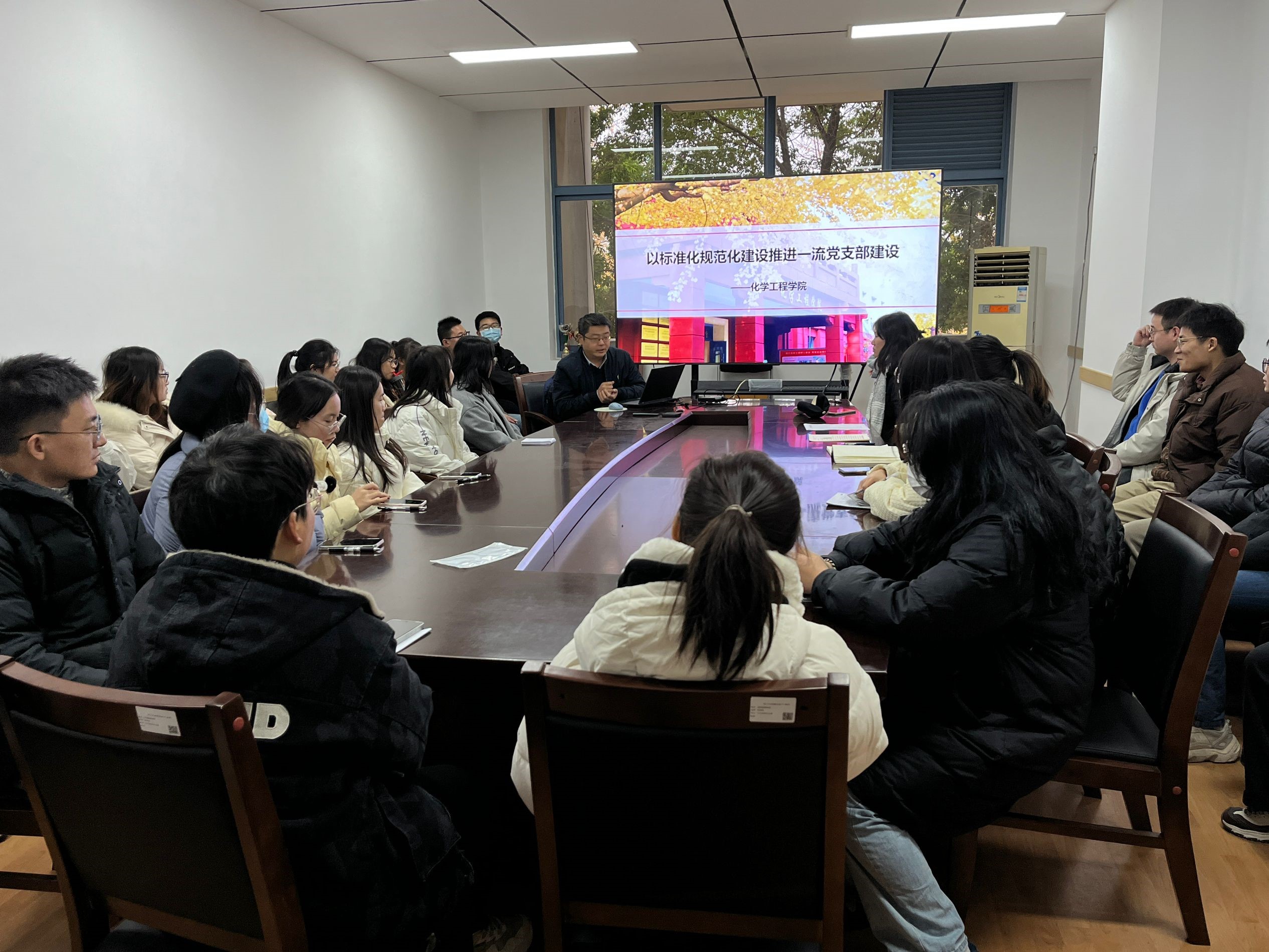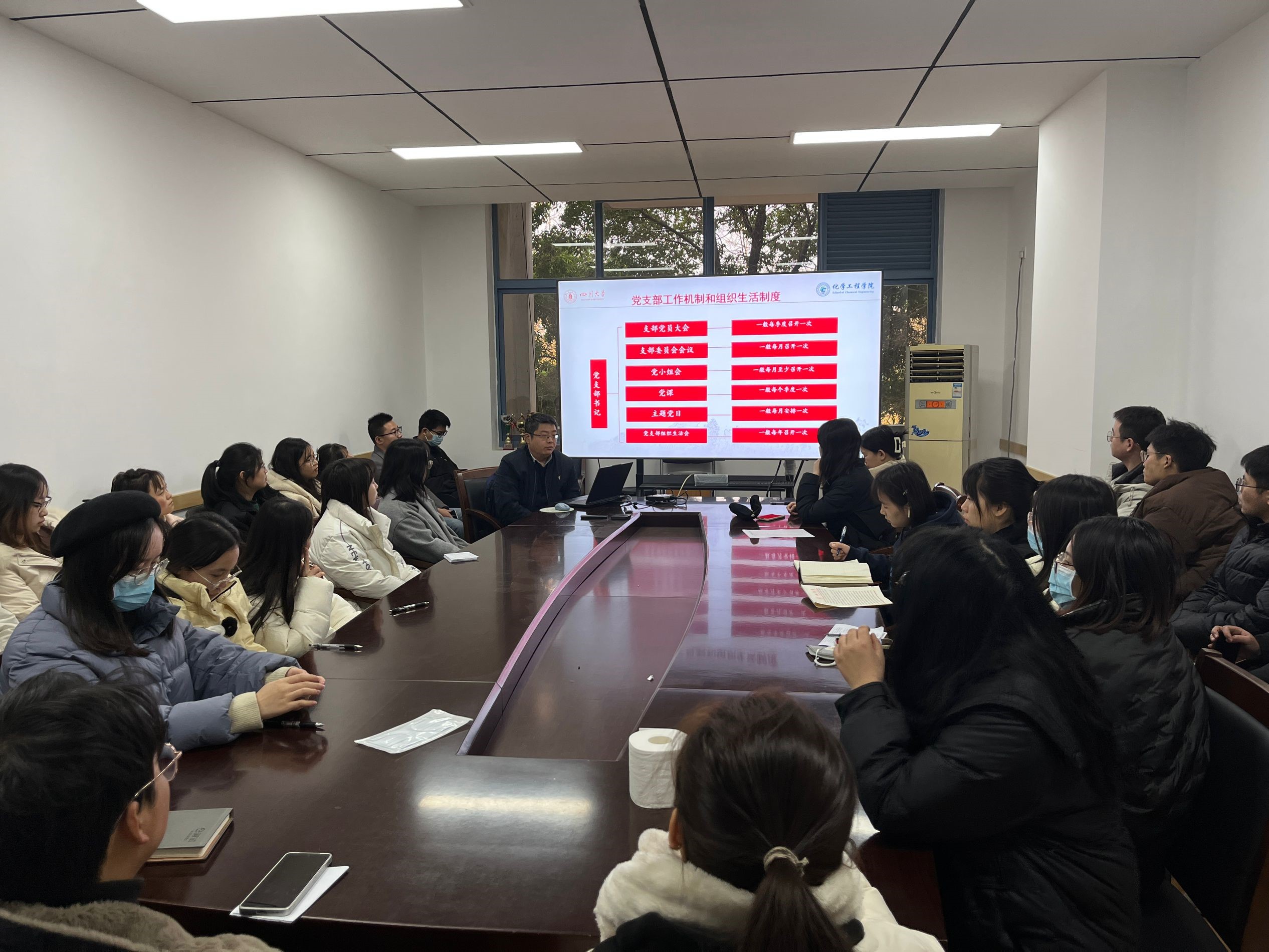 习近平总书记在全国组织工作会议上的讲话中提到:“基层党组织是党执政大厦的地基,地基固则大厦坚,地基松则大厦倾。”诚然,合抱之木,生于毫末;九层之台,起于垒土。党的工作最坚实的力量支撑在基层,基层党组织对于党的生命力举足轻重,必须把抓基层打基础作为长远之计和固本之举。新葡亰8883ent研究生第三党支部作为党的基层支部,是党的思想宣传和理论教育的重要阵地,是通过各种集体学习引导大学生树立正确的世界观、人生观和价值观,以增强党性观念和组织纪律性的重要支柱。因此,为提高学生党员的凝聚力和战斗力,为党的事业发展提供坚实的组织保障,2023年12月15日,支部有幸邀请到学院党委副书记兼纪委书记李德富,于江安校区一基楼B218开展了以“以标准化规范化建设推进一流党支部建设”为主题的专题党课学习,深入探讨作为基层党组织中青年学生我们,应当怎样为一流党支部设添砖加瓦。此次专题党课由研三支部书记余慧敏主持,组织委员郑艳宇同志确认到场人数,党员和入党积极分子40余人参加活动。