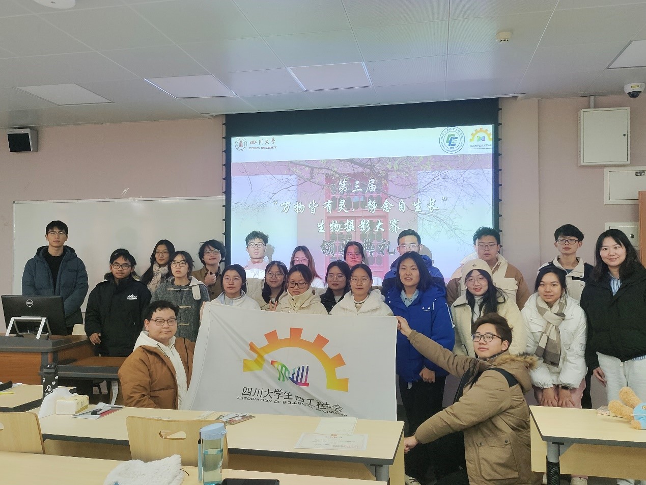 2023年12月22日下午,新葡亰8883ent生物工程协会在新葡亰8883ent江安校区第一教学楼A座109教室举办了第三届“万物皆有灵,静念自生长”生物摄影大赛颁奖仪式,协会指导老师李忆雯老师和袁玲老师出席本次颁奖仪式,本届生物摄影大赛圆满落幕。