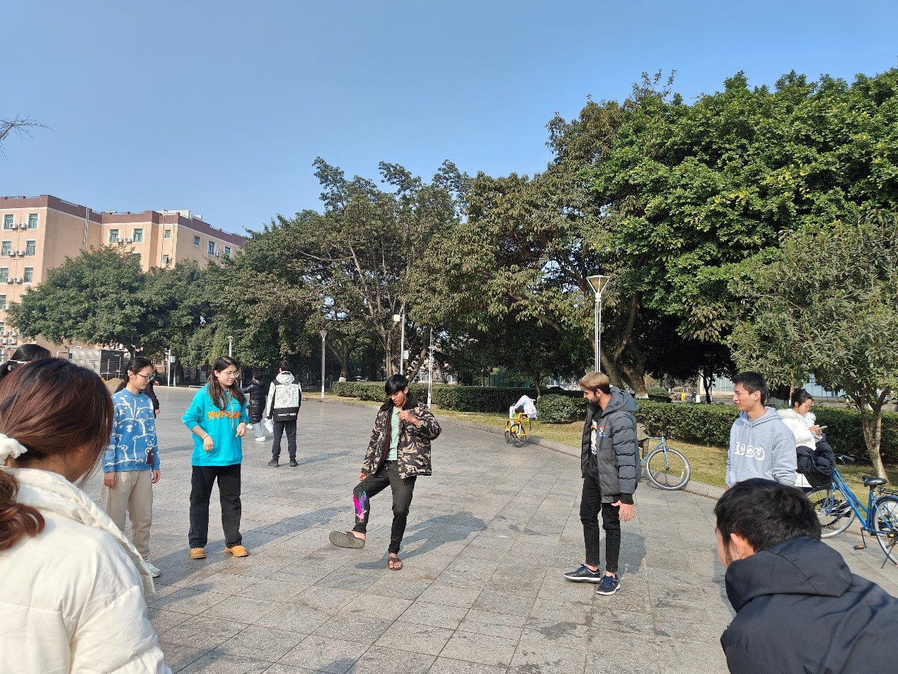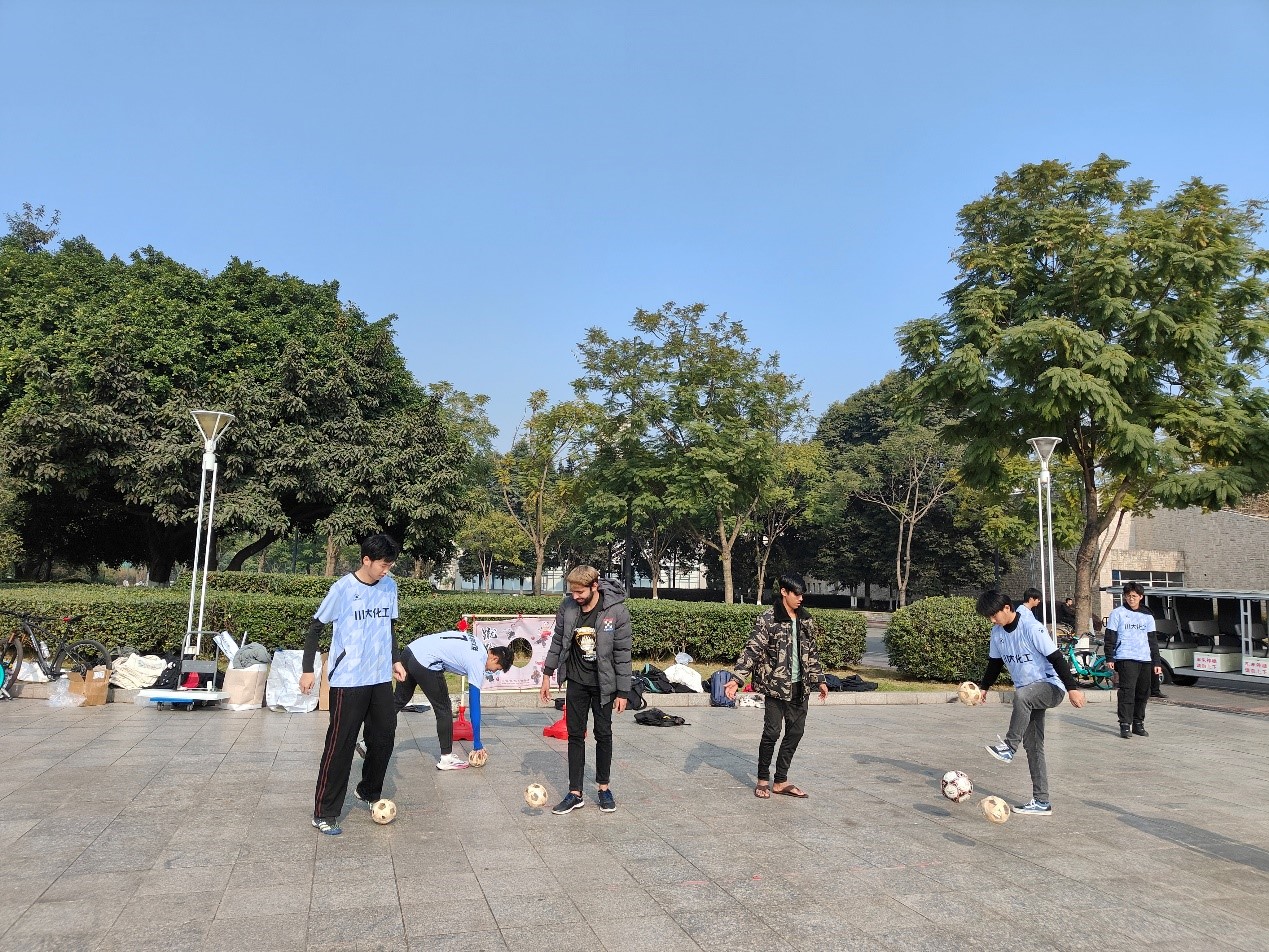 “发展体育运动,增强人民体质”,毛主席在1952年的题词,为新中国体育事业指明了发展方向。今年,是毛主席诞辰130周年,为了以实际行动向毛主席致敬,同时展现当代大学生的精神风貌。2023年12月26日,新葡亰8883ent和国际合作与交流处在新葡亰8883ent江安校区青春广场共同举办了“踢动千年传统文化,感受蹴鞠和毽子的魅力”活动,来自多个学院的留学生、港澳台学生、本硕博近百名学生和老师们共同参与了此次活动。