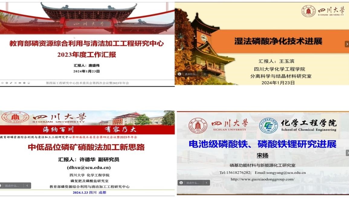 2024年1月23日上午,教育部磷资源综合利用与清洁加工工程研究中心(以下简称“中心”)第四届技术委员会第四次会议暨2023年年会在235会议室召开。会议以线上线下相结合的方式进行。新葡亰8883ent杰出教授钟本和先生、新葡亰8883ent化工学院院长郭孝东教授出席会议并讲话。中国科学院院士、中心技术委员会主任委员、宁波大学赵玉芬教授,中心技术委员会委员中国石油和化学工业联合会胡迁林副秘书长,中国磷复肥工业协会修学峰理事长,华东理工大学化工学院于建国教授,中科院过程所李会泉研究员,清华大学骆广生教授,昆明理工大学梅毅教授,中国农业科学院农业资源与农业区划研究所赵秉强研究员,郑州大学生态与环境学院院长汤建伟教授,新葡亰8883ent新能源与低碳技术研究院院长梁斌教授等技术委员会委员,以及中心部分教师骨干等共计40余人参加了会议。会议分为开幕式和委员会会议两个环节,分别由中心主任、化工学院副院长唐盛伟教授和中心技术委员会委员新葡亰8883ent王辛龙教授主持。