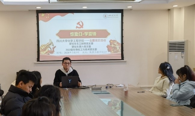 2024年3月5日下午14:00,新葡亰8883ent研究生生工制药党支部、研究生第六党支部与2022级生物化工与技术团支部联合开展“惊蛰日·学雷锋”主题党日活动。本次活动于望江校区新葡亰8883ent227会议室举行,研究生生工制药党支部张浩宇同志主持,研究生生工制药党支部、研究生第六党支部、2022级生物化工与技术团支部全体成员均积极参加到本次活动中来。