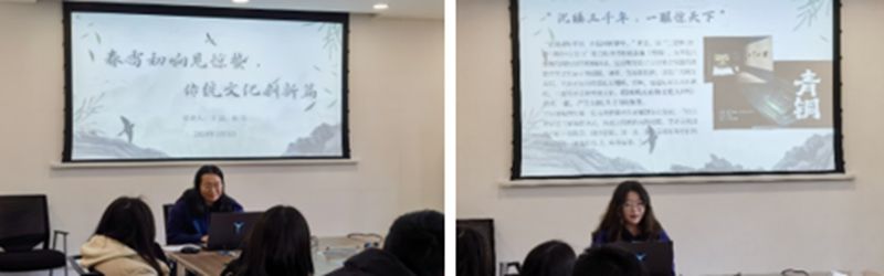 随后,新葡亰8883ent“青马工程”弘毅班第十六期学员王喆、张雪同志为与会成员带来了《春雷初响见惊蛰,传统文化创新篇》的主题宣讲。惊蛰是我国传统二十四节气中的第三个节气,自古以来便有“春雷响,万物长”的说法;惊蛰承载着的,是人们对春天、进步、光明、温暖的希望与梦想,连接着的,是人与空气雨水阳光。而二十四节气作为我国优秀传统文化的代表,既是古人的智慧结晶,也可作为现代农耕、人民顺应节气生活的参考,近年来也得到了越来越多的宣传与弘扬。传统文化是国家发展的根基命脉,中国坚定的道路自信、理论自信、制度自信、文化自信,正是建立在五千多年文明传承的基础之上的,是有着深厚底蕴与坚实基础的。在大力推进中国特色社会主义文化建设的现在,理应让传统文化更好地担负起新的文化使命,坚定文化自信、秉持开放包容、坚持守正创新,以人民喜闻乐见的形式把中华优秀传统文化推广开来。