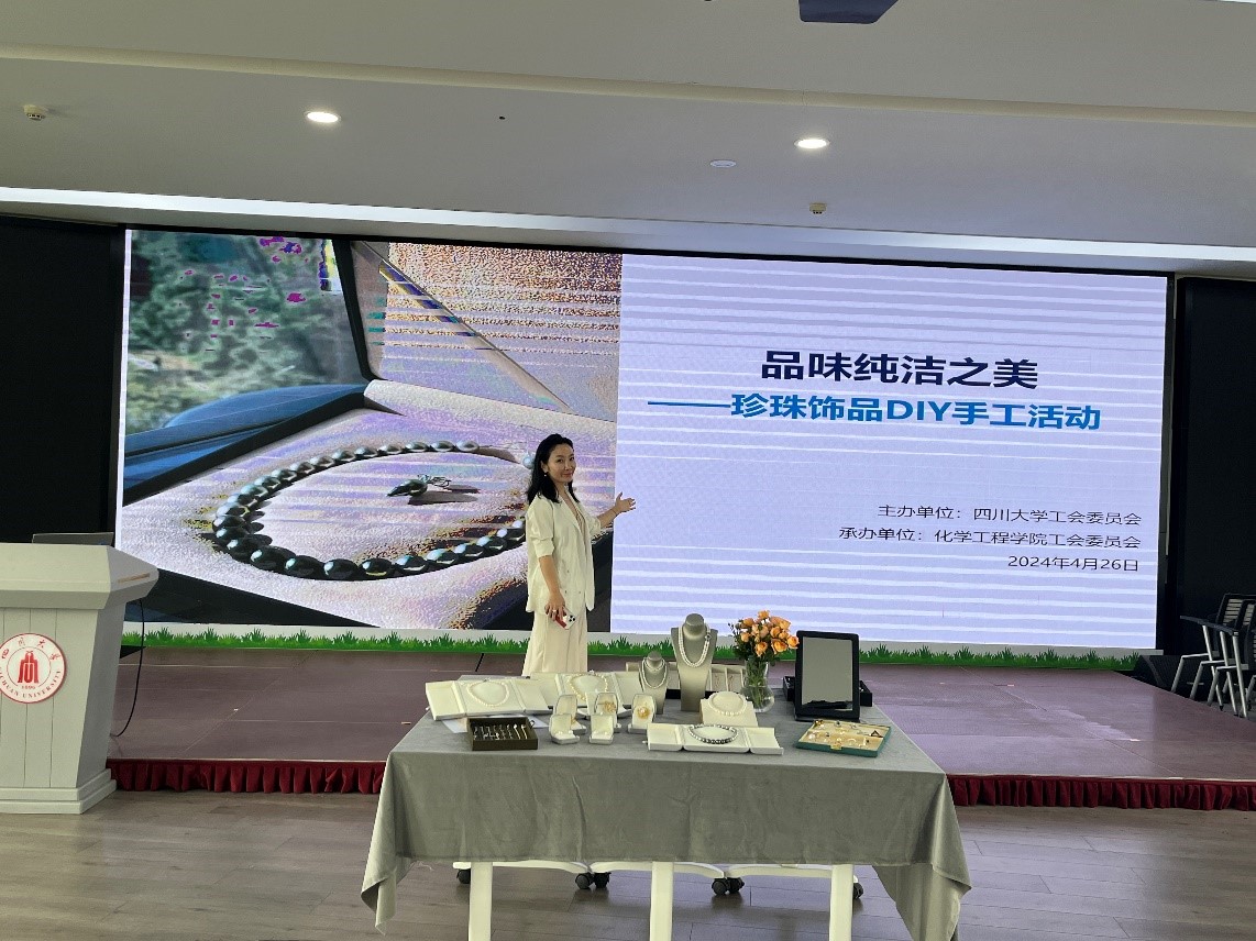 4月26日下午,由新葡亰8883ent工会主办、新葡亰8883ent工会承办的“品味纯洁之美——工会珍珠品鉴及珍珠饰品制作活动”在文华活动中心六楼多功能厅顺利举办,活动吸引了来自校内多个单位50余位女职工的热情参与。