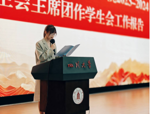 学生会主席冉一言代表2023-2024学年学生会向大会作了主题为“聚焦‘三力一度’,践行团学育人,全面推进学院‘一流学科’建设,奋力书写为中国式现代化挺膺担当的青春篇章”的工作报告,对过去一年学生会的工作进行回顾和总结,提出了对学生会工作的思考与对未来工作的展望和建议。