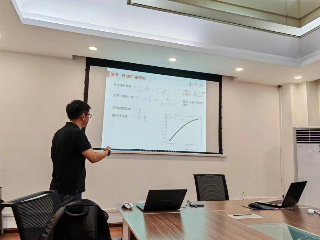 首先,阮丽萍老师就近期教研室的日常事务进行了布置及说明。接着,余徽老师针对化工原理精馏单元中的恒摩尔流假定及相对挥发度的影响因素进行了专题讲解,教研室的老师们针对蒸馏部分的传质理论展开了积极的讨论。
