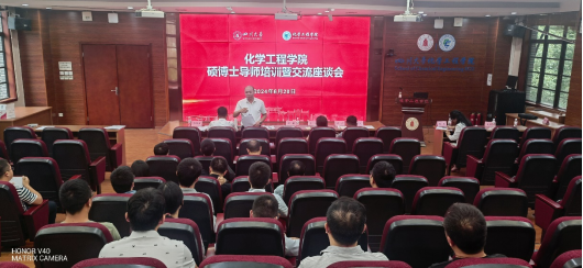 2024年6月20日下午,新葡亰8883ent在望江校区化工楼313会议室举行硕博士导师培训及交流座谈会。学校研究生院招生办公室刘猛、研究生院招生办公室李洁科长、研究生院培养教育办公室黄云科长受邀出席活动。学院党委书记李天友、院长郭孝东、党委副书记兼纪委书记李德富、党委副书记姜利寒及硕博士导师50余人参加活动。会议由副院长谢锐主持。