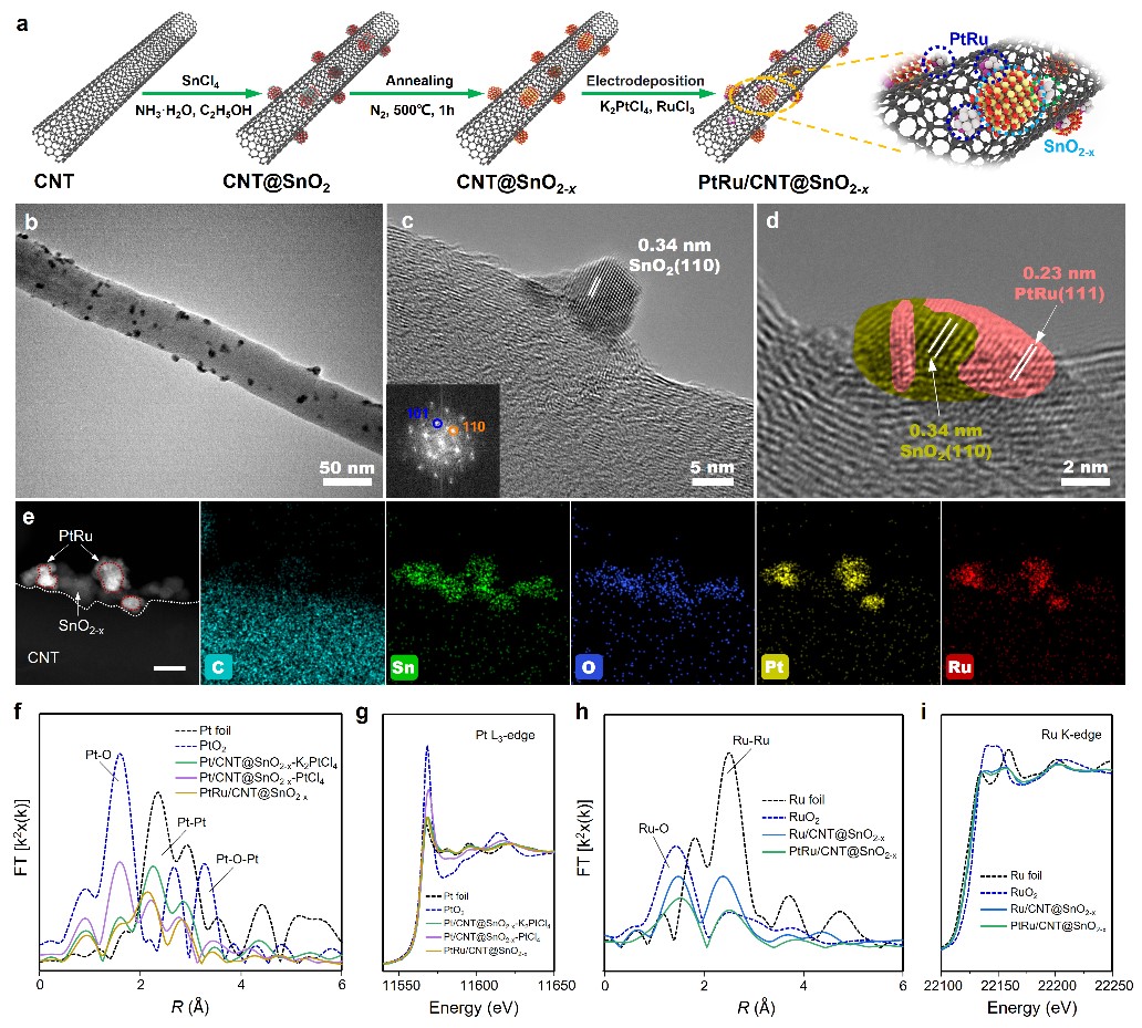 近日,我院岳海荣教授团队与清华大学王定胜教授团队合作提出了一种高效复合结构(PtRu/CNT@MO2-x)碱性HER催化剂的设计策略。通过氧化物载体优化、Pt物种调控和修饰,改善催化剂导电性和调控异质界面局域环境,平衡了活性位点上H吸脱附、H2O吸附和解离行为,实现了碱性介质中的Volmer反应和H*脱附动力学同步加速,从而增强了Pt基催化剂的碱性HER性能。相关工作以“Tuning the Local Environment of Pt Species at CNT@MO2-x(M = Sn and Ce) Heterointerfaces for Boosted Alkaline Hydrogen Evolution”发表在国际顶级期刊《Journal of the American Chemical Society》。新葡亰8883ent为论文第一单位,化工学院岳海荣教授、清华大学王定胜教授为该论文通讯作者,化工学院周昶安助理研究员、马奎副教授为论文第一作者。