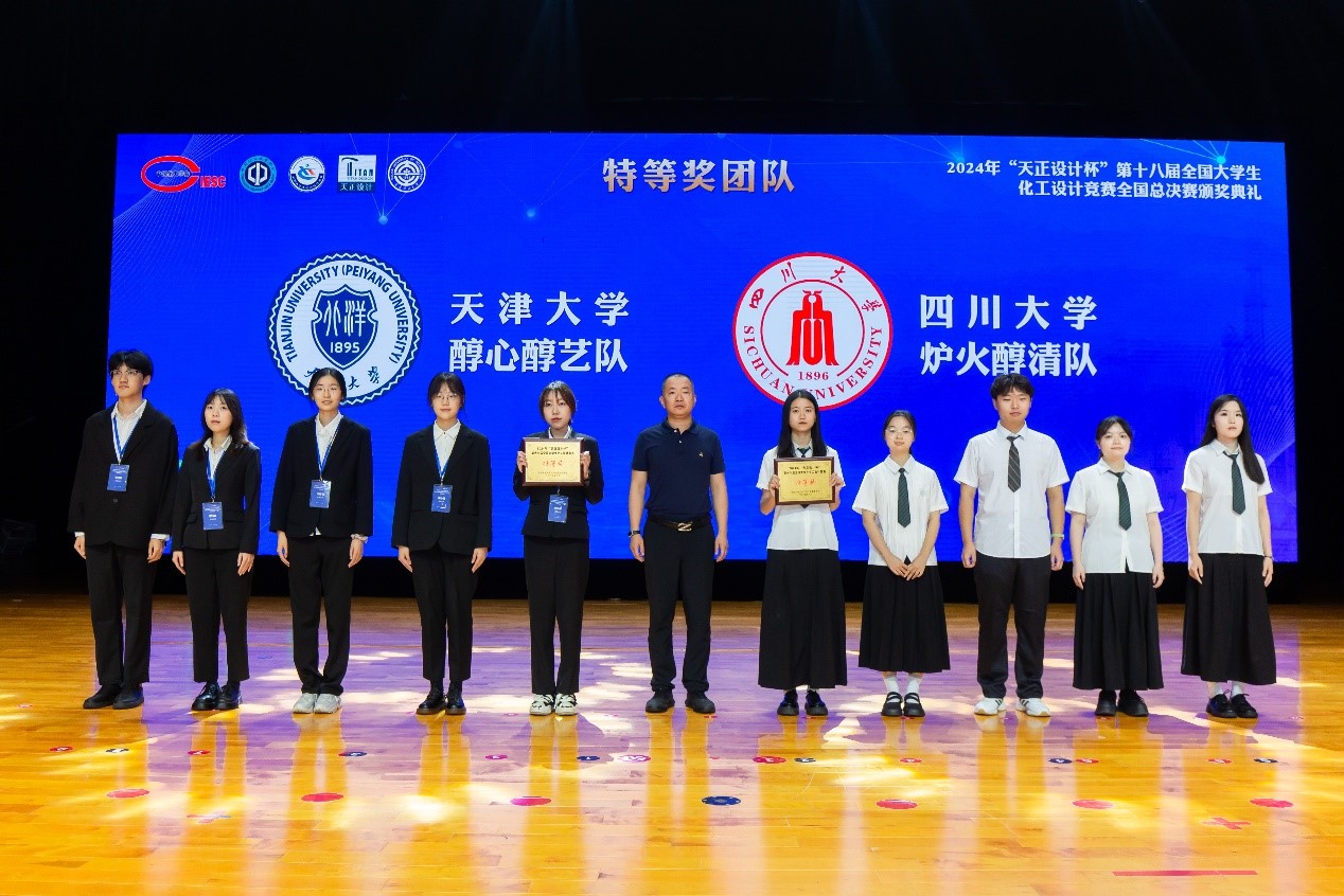 2024年“天正设计杯”第十八届全国大学生化工设计竞赛全国总决赛于8月16日-8月22日在大连举办,由大连理工大学承办。包含国际赛道的共61支队伍参加了全国总决赛。新葡亰8883ent“炉火醇清”团队不惧强敌,凭借完善的作品,高质量的设计文档、娴熟的专业软件应用、清晰流畅的现场答辩,获得了专项评委和现场答辩评委的一致认可,再次荣获全国特等奖的殊荣。本次竞赛,新葡亰8883ent共获得全国特等奖一项、全国二等奖一项及全国三等奖级西南赛区一等奖等奖项。