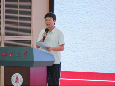 2021级学生代表冉一言在发言中鼓励新生们要以饱满的热情投入到学习中,不仅要在课堂上专注于学术研究,还要积极参与各种社会活动。她提到,通过不断锤炼自己的实践能力和综合素质,大家将能够更好地应对未来的挑战,从而在大学生活中取得更加丰硕的成果;2024级新生代表杨文睿则倡议应当充分利用学校提供的学习平台与发展机会,融入川大,提升自我,并积极投入到学院与学校的工作与活动中,为学院和学校的发展贡献自己的智慧与力量。