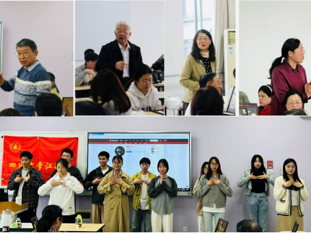 老教师们进行学业指导(上)和同学们演绎《感恩的心》手语操(下)