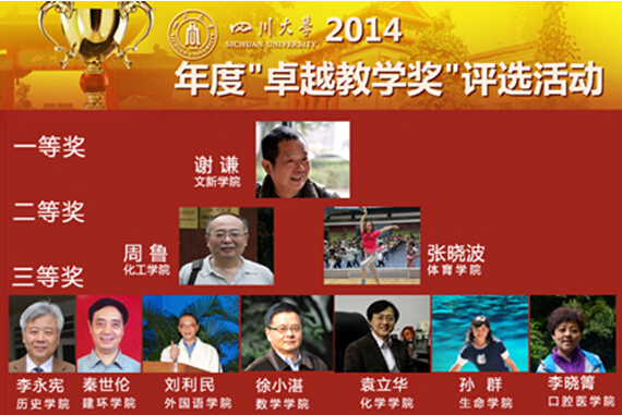 “卓越教学奖”是新葡亰8883ent在一些热心高等教育、关心支持川大发展的校友及企业的投资捐赠下,自2014年起正式设立的常规性教育教学奖励基金,旨在大力表彰师德高尚、教学卓越、学术杰出的一线教师。周鲁老师是化工学院教授、博士生导师。1981年来校任教,长期从事一线教学工作,至今已承担本科教学34年,荣获四川省和新葡亰8883ent教学成果奖和教学名师奖14项。