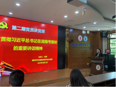 党课是每一名共产党员的必修课,是严格党的组织生活制度的重要方面。为促进党内交流、增强党性教育并提升党员素质,新葡亰8883ent研究生膜科学与功能材料党支部于2024年4月28日在望江校区化工楼313会议室开展了第二期“党员讲党课”专题活动,学习领会习近平总书记在湖南考察时的重要讲话精神。