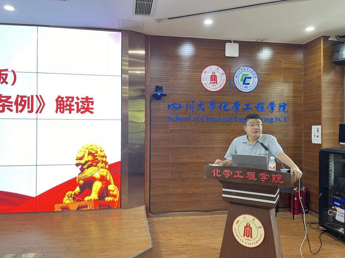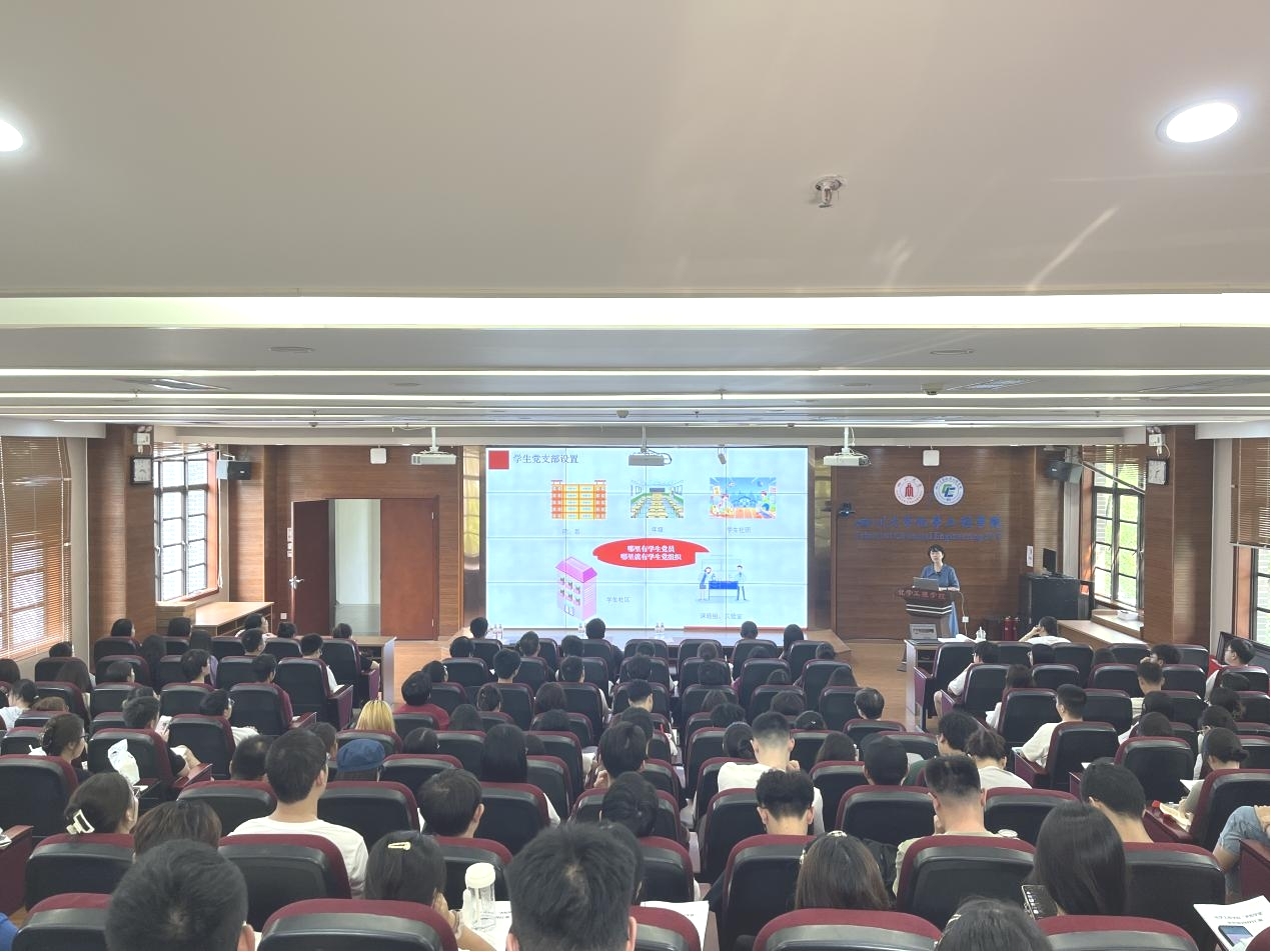 为深入学习习近平新时代中国特色社会主义思想,贯彻落实中央《党史学习教育工作条例》和学校党委关于党纪学习教育常态化、长效化的工作要求,持续加强学生党员教育培训,9月20日,新葡亰8883ent党委在望江校区化工学院313报告厅举办“求知”学堂2024年第二期培训班,开展党的理论、党的纪律专题党课。学院党委副书记姜利寒、党委副书记兼纪委书记李德富、学院党政办主任李晓燕老师、党建科科长高敏老师和180余名新生党员和预备党员参加党课。高敏主持培训活动。