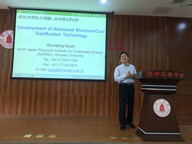 2016 年5月4日,日本国立弘前大学北日本新能源研究所教授、新葡亰8883ent杰出校友官国清教授在新葡亰8883ent313会议室为我校师生带来一场题为“Development of Advanced Biomass/Coal Gasification Technology”的学术报告。本次报告会由化工学院院长褚良银教授主持。