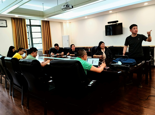 教研室全体成员在教研室主任鲁厚芳教授的带领下参与会议研讨,并对课程知识图谱的产权归属、使用方式、后期维护以及多语种引入等问题进行了深入讨论。陈超老师就这些问题给出了详尽的解答,并向与会者展示了成熟的课程知识图谱案例。